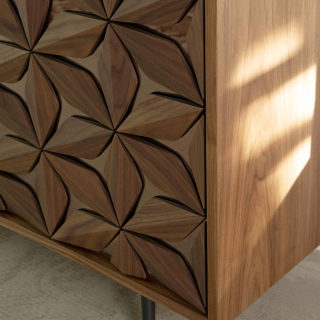 Эффектная модель серванта All Star - новая коллекция фабрики Tonin Casa. Сервант имеет зеркальные дверцы, которые украшены резным, объемным декором в форме звезд. Доступен в версии с двумя или тремя дверцами. Внутренние полки из прозрачного стекла. Сервант представлен в двух вариантах отделки: Орех Каналетто и зеркало бронза, Черный Ясень и серое зеркало.