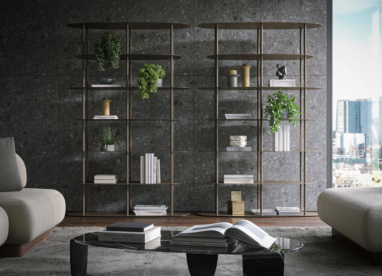 Эксклюзивные и необычные итальянские стеллажи и полки. Широкий выбор отделочных материалов. Натуральное дерево, металл, шпон, МДФ, мрамор и стекло. Производитель - фабрика Tonin Casa. Стеллажи и подвесные полки Тонин Каса не только практичные и функциональные, но и неповторимы в своем дизайне, поэтому они смогут стать настоящим арт-объектом Вашего интерьера.