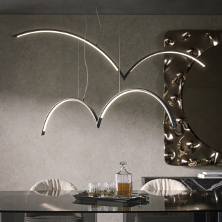 Mood - подвесной светильник в современном стиле. Итальянская фабрика Tonin Casa. Светильник имеет черный подвес со встроенной LED подсветкой. Потолочное крепление в цвете Черный Хром. Светильник можно скомбинировать и сделать два подвеса на одном общем основании (рассчитывается персонально).